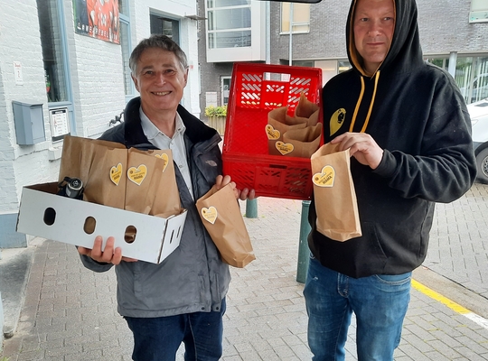 Op de markt van dinsdag 9 mei overhandigde een enthousiaste ploeg bestuursleden een bloemetje aan al de moeders, of aan de vaders die het op hun beurt konden doorgeven aan een moeder :-).